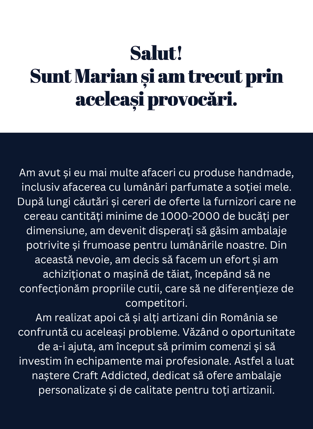 Oferim ambalaje personalizate pe dimensiunea, forma și culoarea dorită de tine. La Craft Addicted ai control total asupra designului ambalajelor tale.