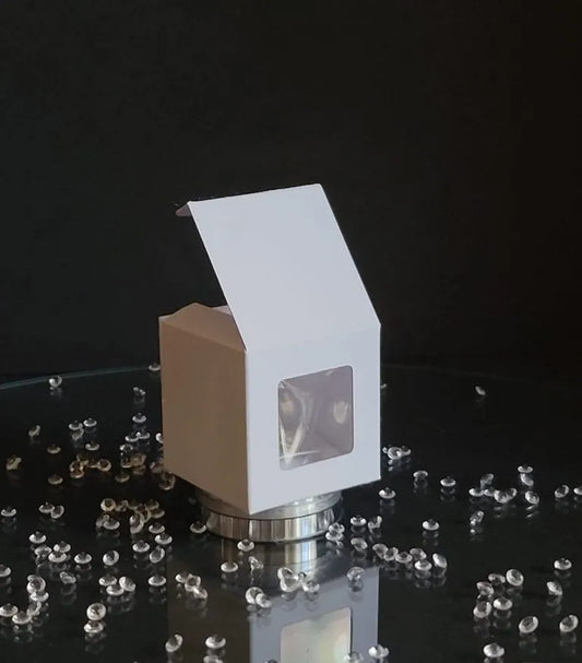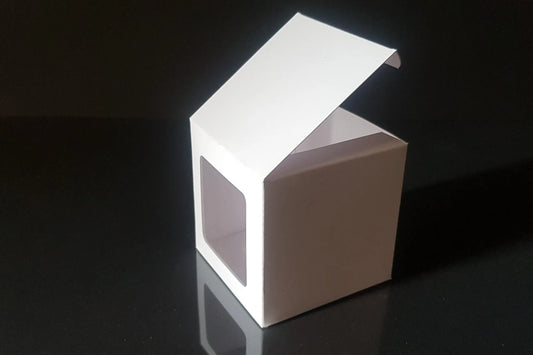Cutie Carton Albă cu Fereastră din Acetofan, 6.5x6.5x9 cm