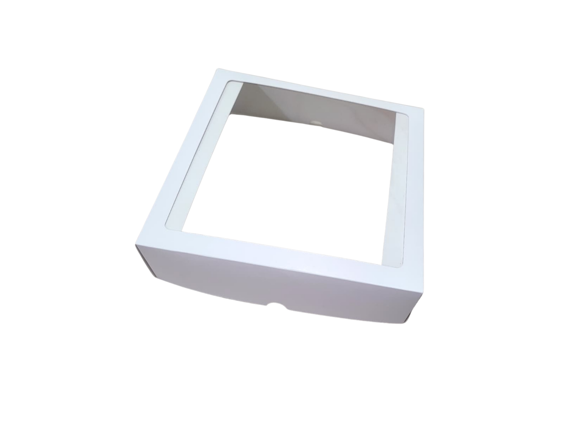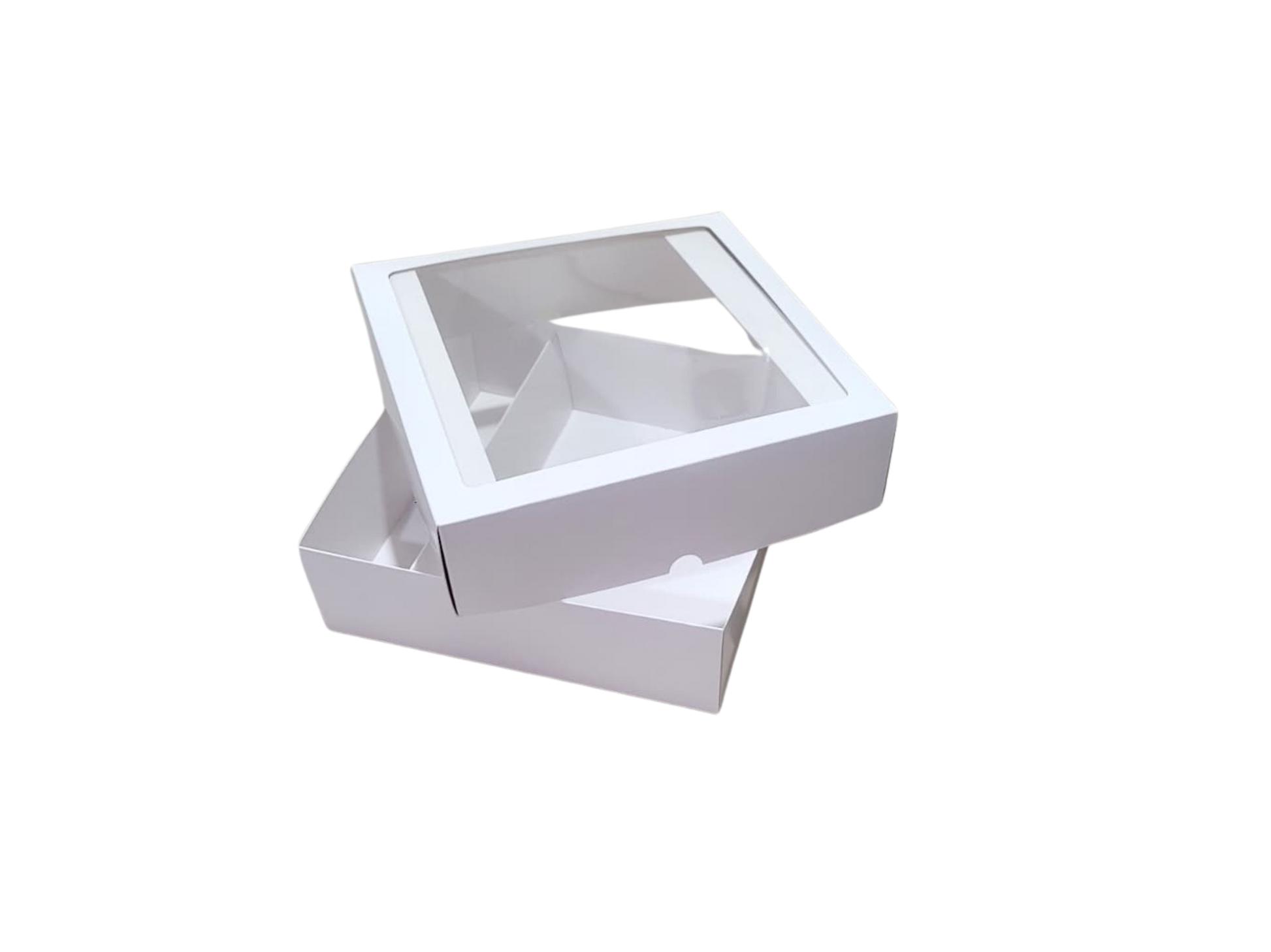 Cutie albă cu capac și fereastră din acetofan – 20x20x6 cm